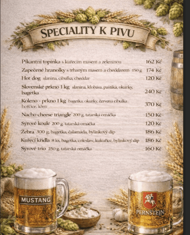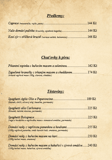 Jídelní a nápojový lístek: